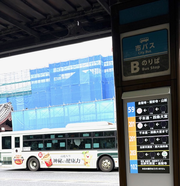 京都市バスB乗りばへ向かい203系統に乗車。約15分で「北野天満宮前」へ到着します。