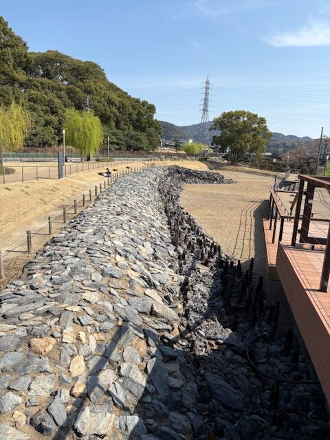 堤防を歩き進めると復元された護岸の展示エリアに着きます。